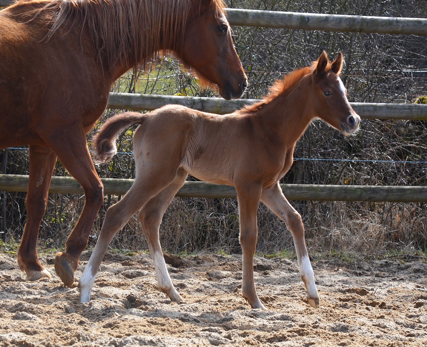 Jenofée de Bozouls est une très belle jument, fille de la bonne Nadia al fée de Bozouls (Melfik d’Alauze x Nadia al Sigour***) et de notre étalon Med des Agatchols*** (Prim de Syrah**** x Meduse***). Jenofée de Bozouls est destinée aux courses d’endurance.