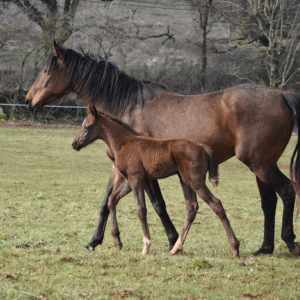 Panache de Bozouls est un fils de Jawida de Bozouls (Munjiz x Zélie de Bozouls par Darweesh) et du célèbre étalon Sir Bani Yas (Amer).