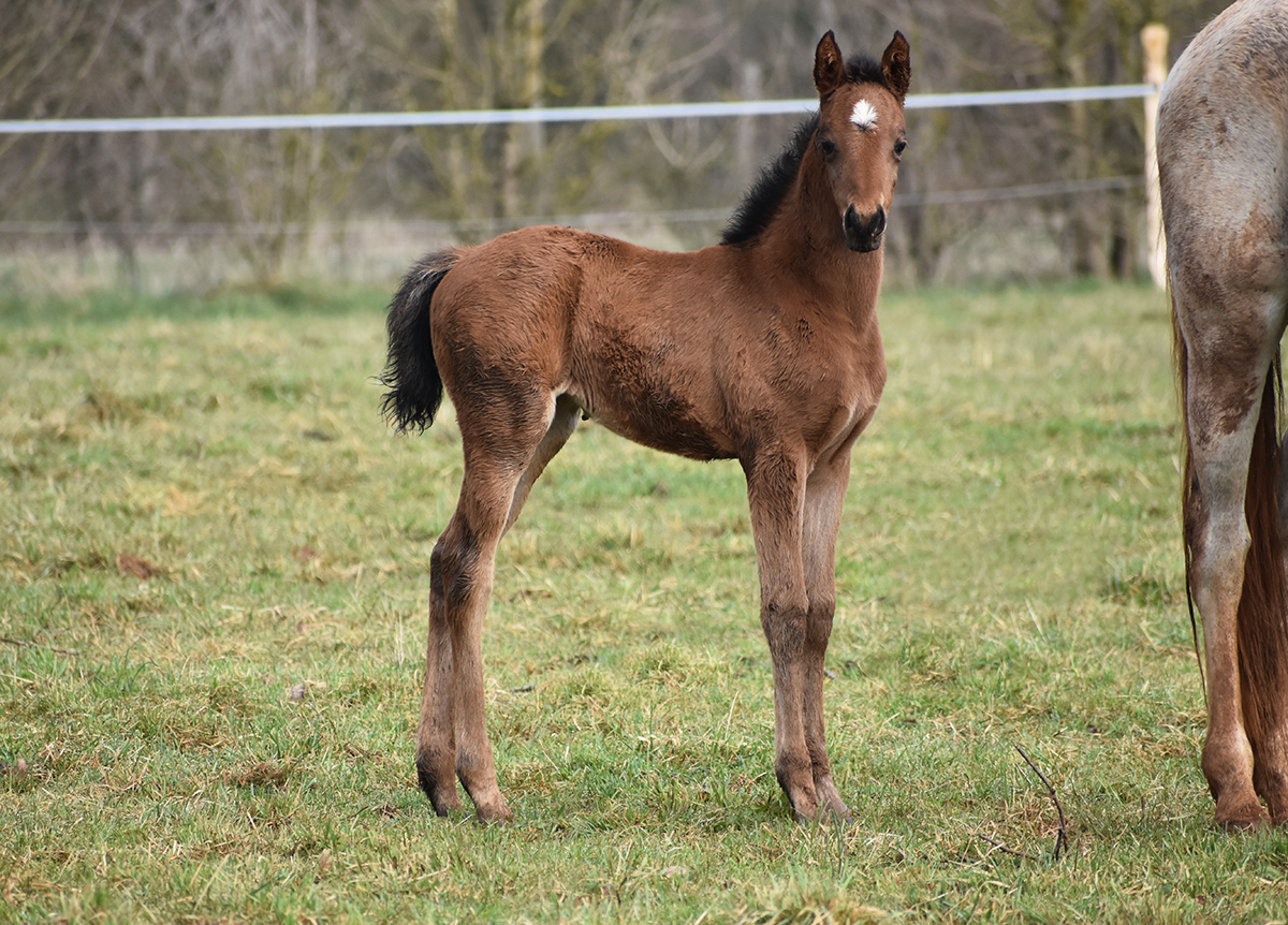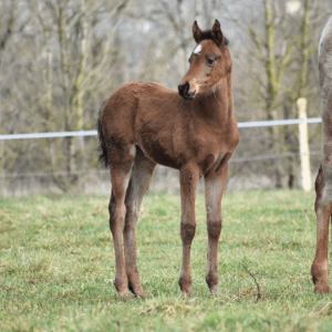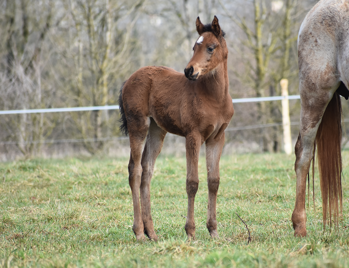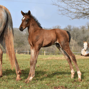 Parvati de Bozouls est une fille de Déhesse de Bozouls (Dahess x Dorasa de la Forêt par Dormane) et de No Risk al Maury (Kesberoy x Nectarine al Maury).