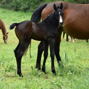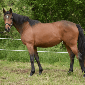 C’est une belle jument dotée d’un très bon caractère et d’un grand modèle qu’elle transmet à ses produits. Elle est DRE**, mère de nombreux produits visibles à l’élevage, parmi eux :